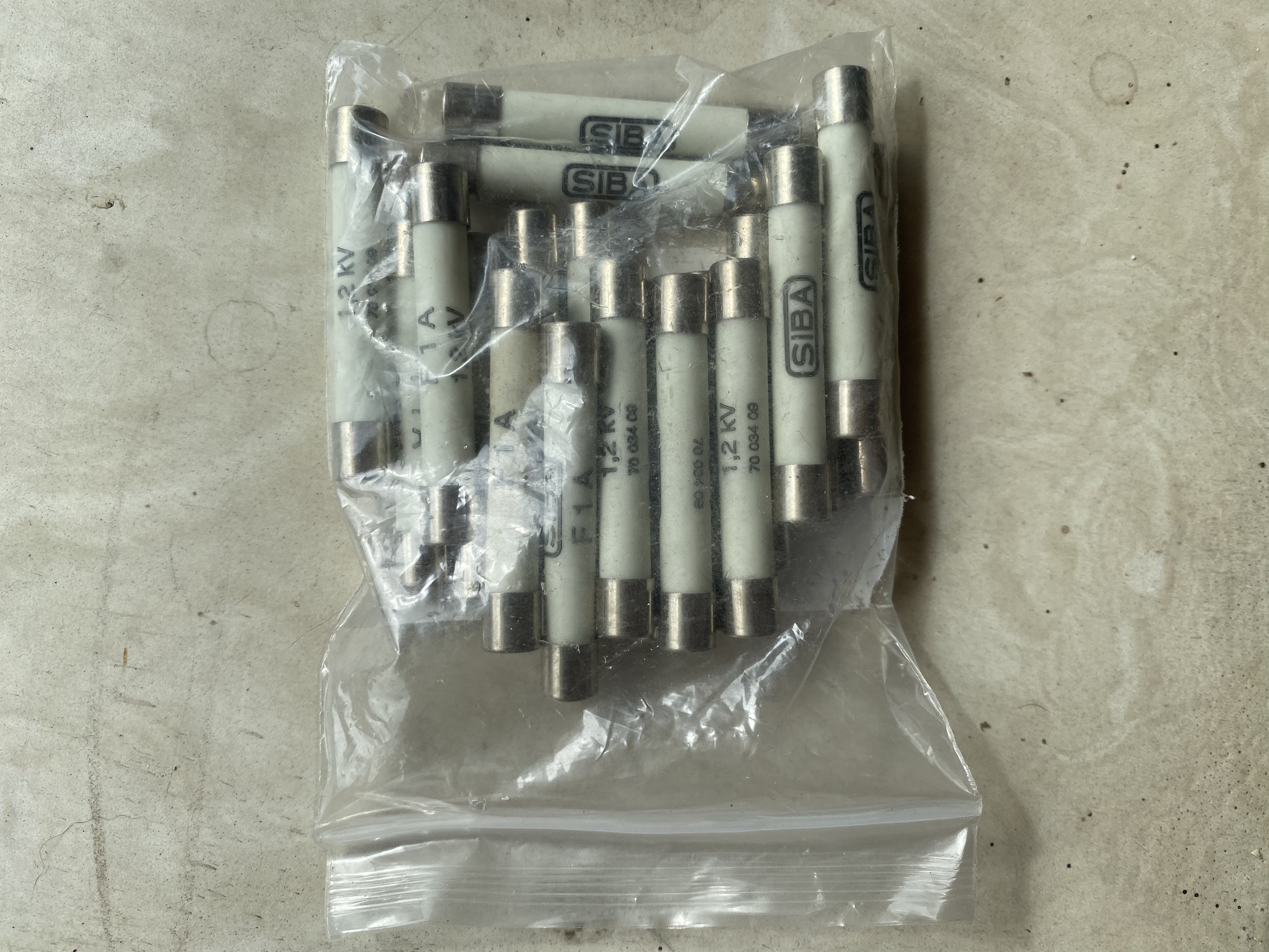 | 18 Pieces Fuses, 1.2kV, F 1A, Make Siba |